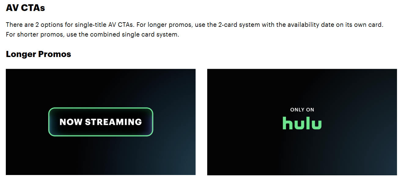Another streaming giant, Hulu is another brand guide example you don’t want to miss. Their brand guide is highly detailed, just as you’d expect with a service that’s advertised on a number of platforms and in an array of contexts.