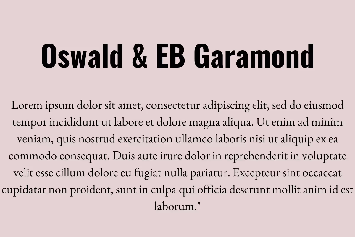 This Google font pairing is a beautiful one to explore. Oswald is a bold and powerful sans serif that's designed to grab attention. Eb Garamond is very elegant, but much more crisp and legible than the classic Garamond font. So, it’s a perfect choice even for large chunks of text.