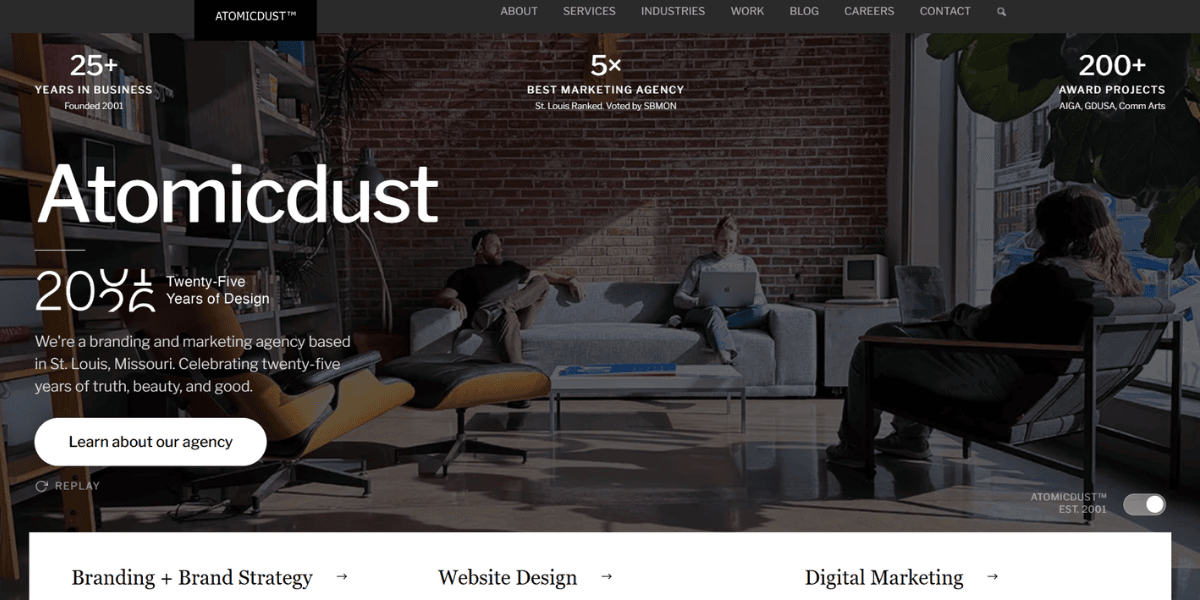 Nice Branding Agency is heavily focused on restaurants. The entire firm, operating 18+ years out of Nashville, is built around restaurant branding: logo designs, menus, packaging, signage, interior branding, and launch marketing. Their rebrand of Plated Modern Kitchen included menu design, packaging, menu boards, a catering menu, a gluten-free menu, and a pre-opening social campaign.