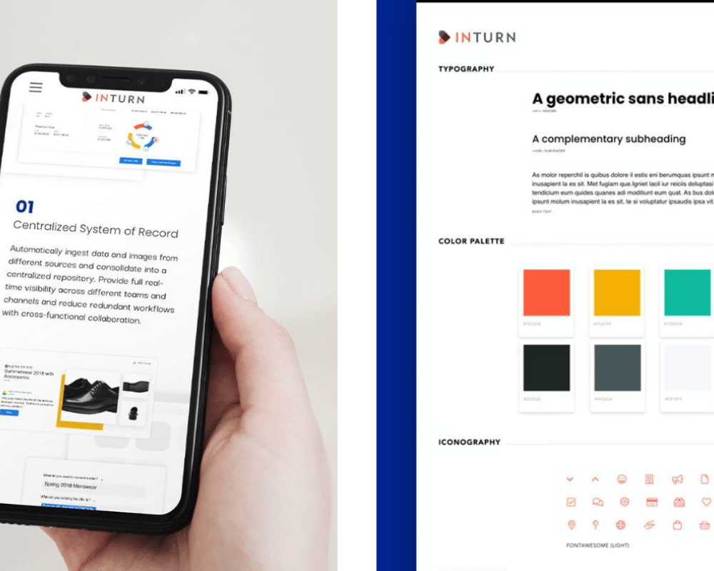 Case study example: Ruckus worked with an inventory management startup called Inturn on redesigning their brand identity and website after the company outgrew its initial brand design.