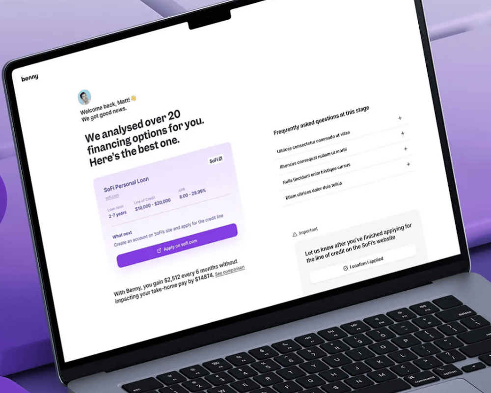 Case study example: Contrast designed a new web app for a fintech startup called Benny. The team moved quickly and went from idea to MVP in just 6 weeks.