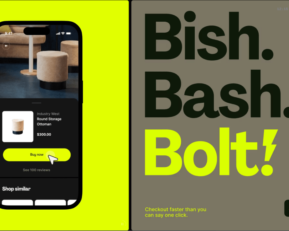 Case study example: Koto Studio collaborated with Bolt, a one-click checkout fintech platform, to overhaul its brand identity The new visual system reflects the product’s speed and simplicity through bold design elements, typography, and energetic brand expression.