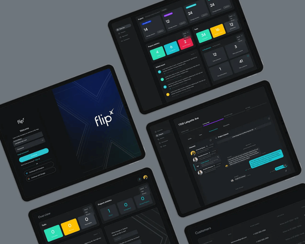 Case study example: Outcrowd created the brand identity and web app for FlipX, a startup for managing real estate operations. The design quickly helped the company grow from an unknown startup to a popular product.