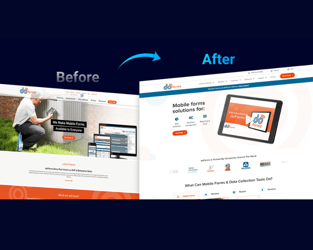 Case study example: Digital Silk redesigned the doForms website, a mobile forms and data collection software, improving SEO, user experience, and navigation to boost organic traffic and engagement for the product’s platform.