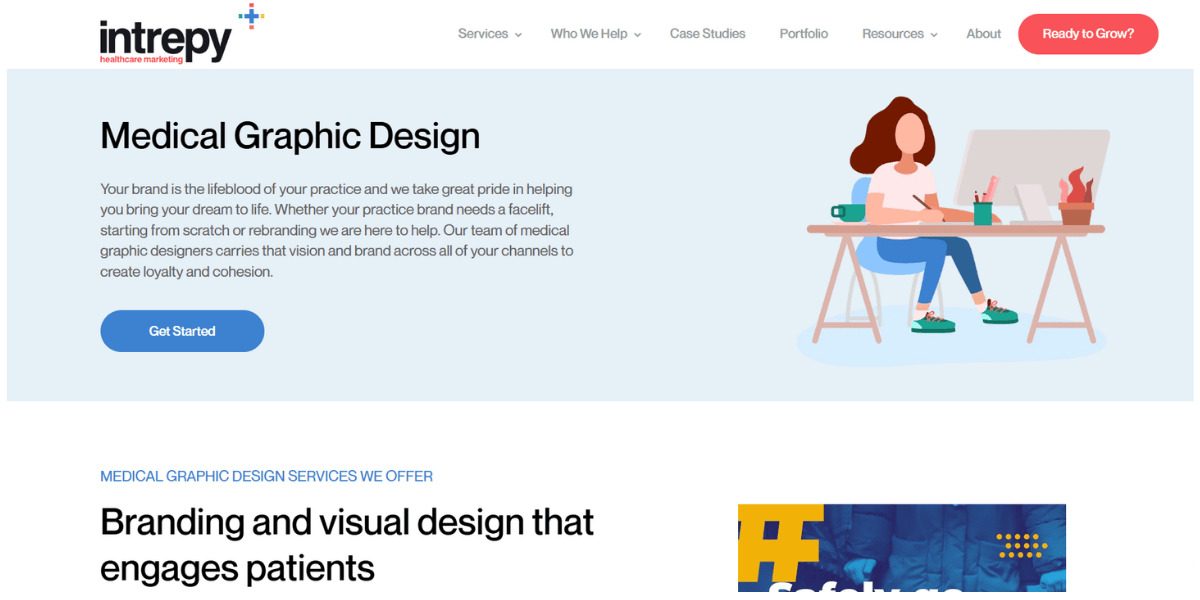 Intrepy is a healthcare marketing agency that includes graphic design as part of a broader practice growth offering. Their designers work specifically with medical practices, specialty clinics, and healthcare providers to produce logos, websites, patient brochures, digital ads, and marketing collateral. Design is not isolated from strategy: it is informed by patient acquisition goals, local SEO, and the specific communication needs of clinical environments.