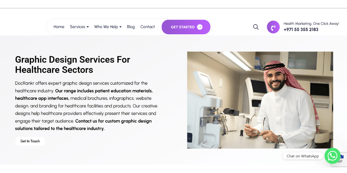DocRankr is a UAE-based healthcare marketing agency that offers graphic design services specifically for medical centers, clinics, and healthcare brands operating in the Middle East. Their design work covers patient education materials, medical branding, healthcare app interfaces, website design, and print collateral. Critically, their team understands local healthcare regulations and works with the sensitivity that medical subject matter requires, an important factor for brands where cultural context shapes patient communication.