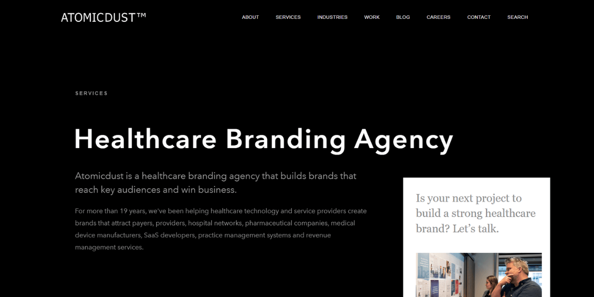- ✅ Best healthcare branding agency: Atomicdust (17+ years, medical devices to specialty clinics)