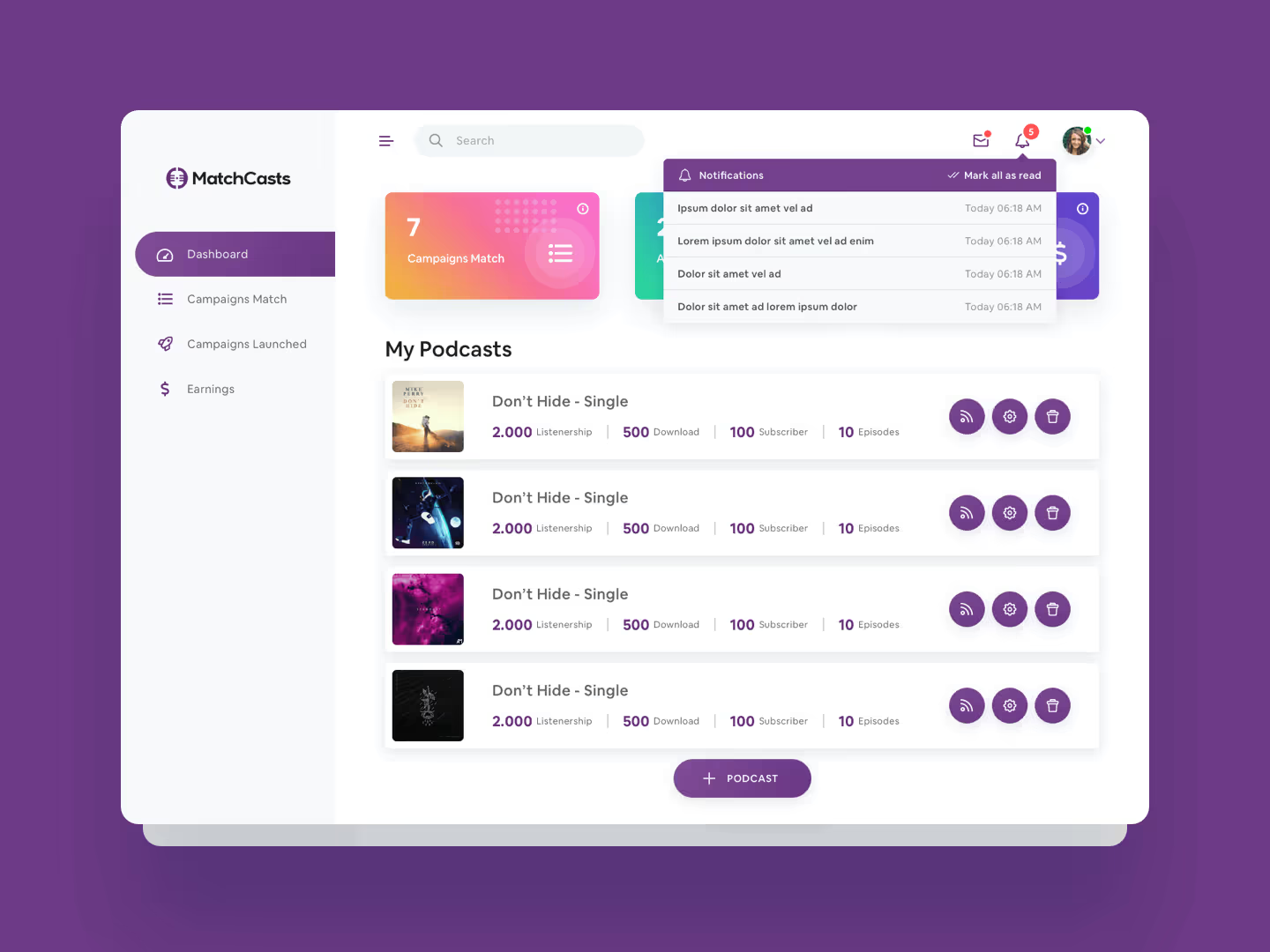 There’s also MatchCasts, a highly niche podcast advertising platform. Their concept was strong, but their branding and platform UI didn’t reflect it. We worked on an entirely new platform flow, with color palettes, logo refinement, and presentation deck design. The results? Brighter, more structured branding that felt as engaging as their ambition..