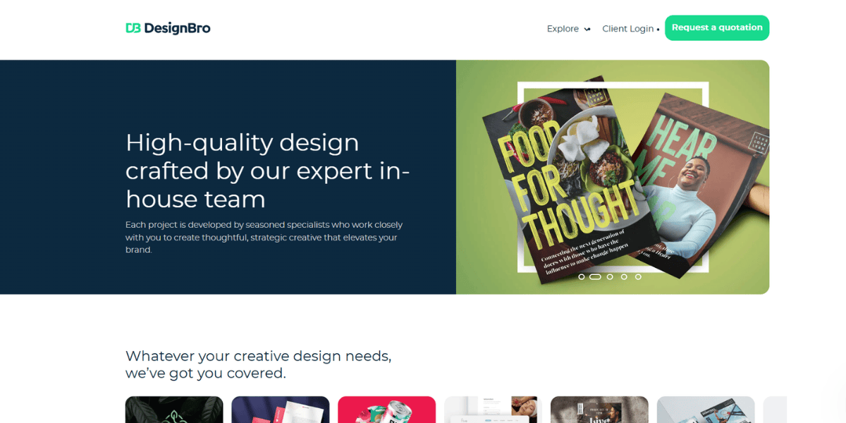 Best for: Teams without an in-house creative director who want managed oversight alongside packaging and multi-format design ✅