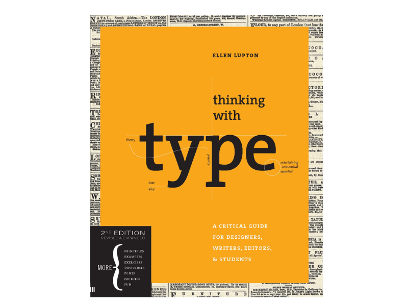 Thinking with Type is a design book by Ellen Lupton that teaches graphic designers how to use typography effectively. It covers everything from numerals to licenses, with exercises and demonstrations to help beginners and experienced designers alike.
