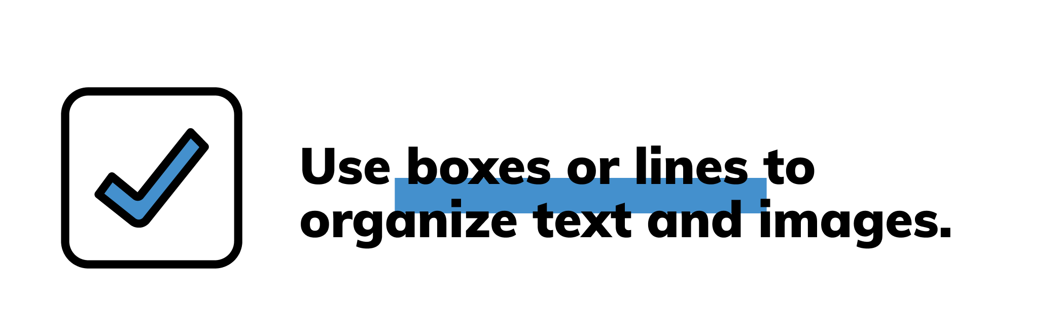 Use boxes or lines to organize text and images.