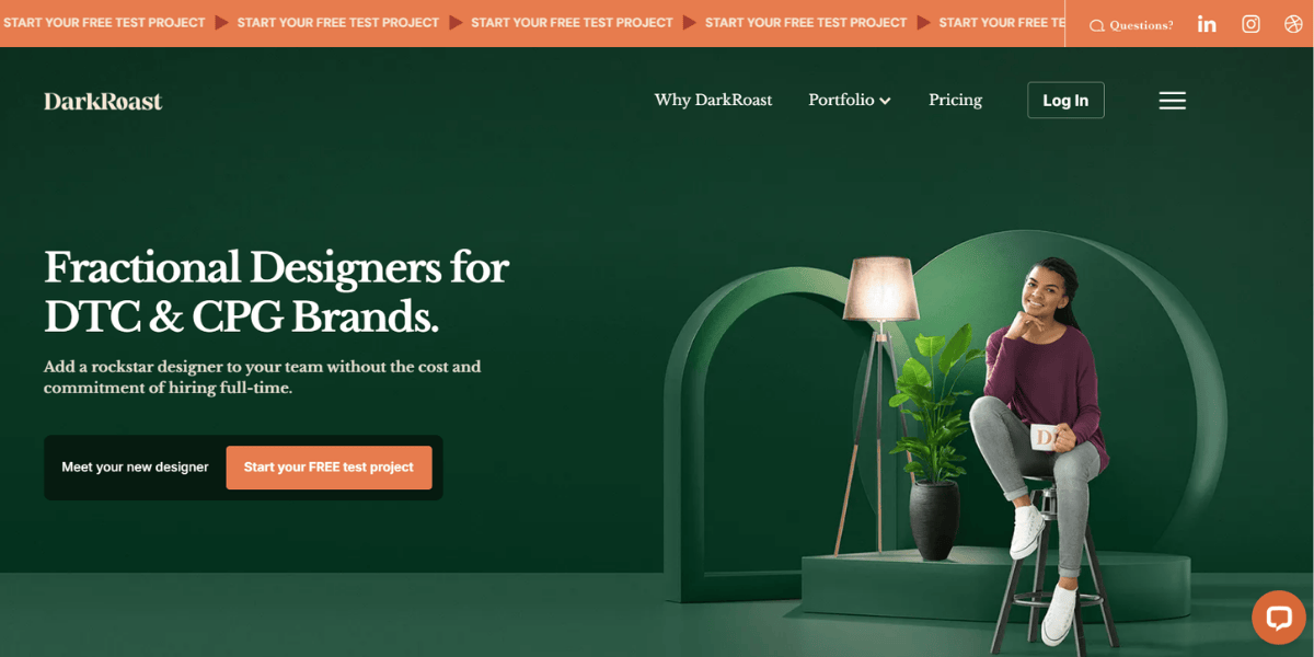 Dark Roas is a premium Canadian service (Ontario-based, founded 2014) that hires exclusively Canadian designers. Starting at $4,500/month, they specialize in CPG (consumer packaged goods) brands. The geographic focus ensures US and Canadian time zone alignment, which matters for daily coordination. Their client list is agency-adjacent, not SMB-focused.