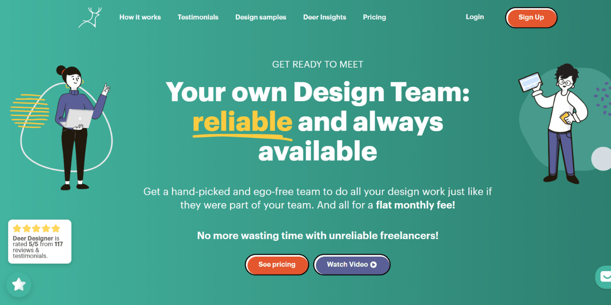 Deer Designer has subscriptions starting at $1,199 a month. However, the entry plan is rather limited, as it excludes some critical types of design, such as presentations, Canva designs, web design, logos and more.