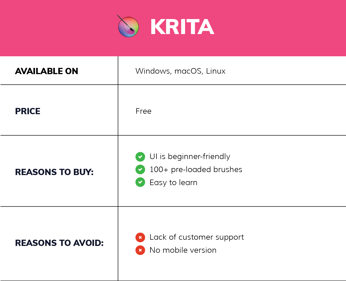 If you are looking for free drawing software tools, then there’s nothing better than Krita. However, if you want all the tools and seamless workflow efficiency then go with the industry-standard Adobe Photoshop.