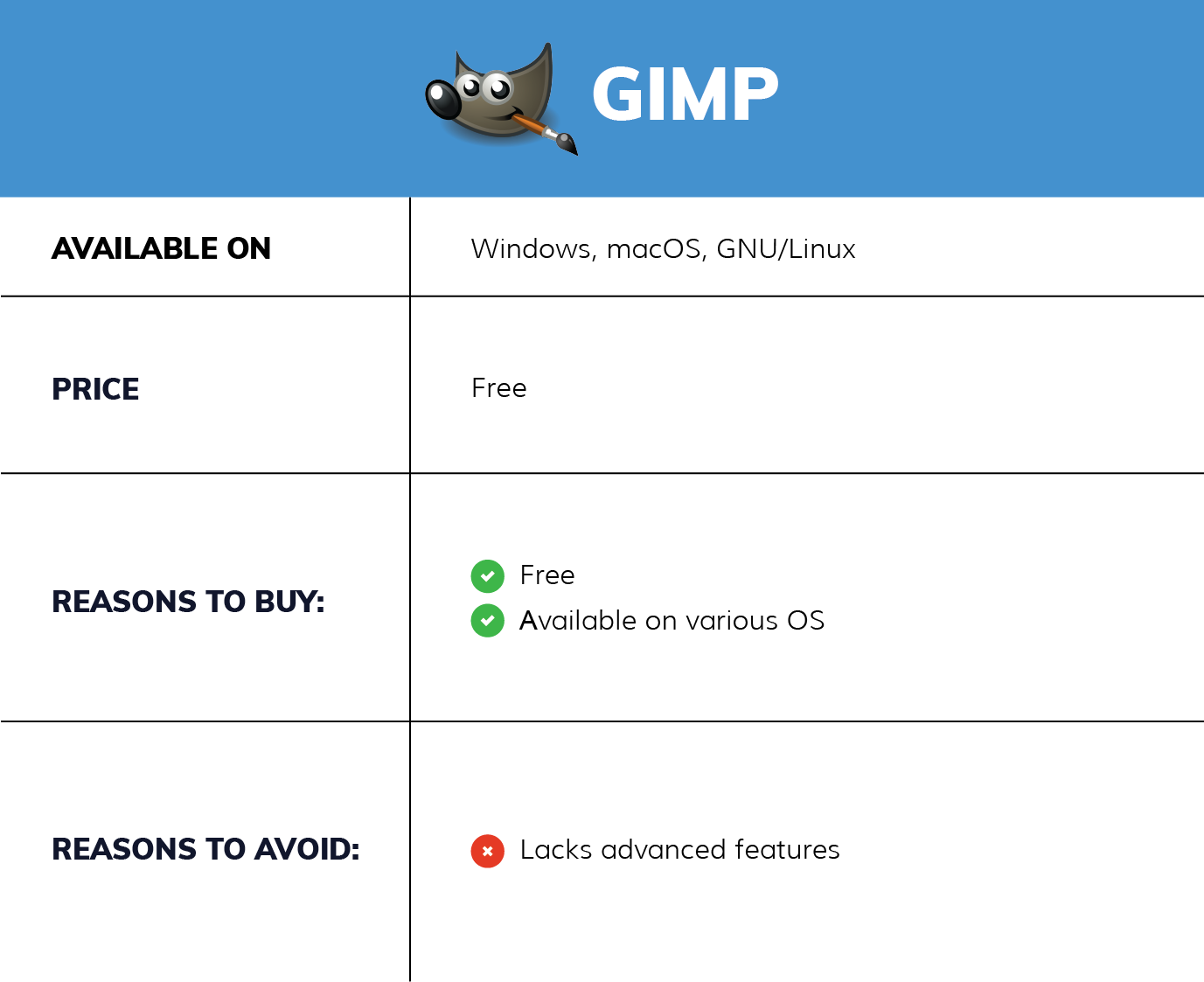 You can extend GIMP’s functionalities with its plugins. It excels in tasks like photo retouching, image composition, transcoding between file formats, and specialized graphic endeavors.