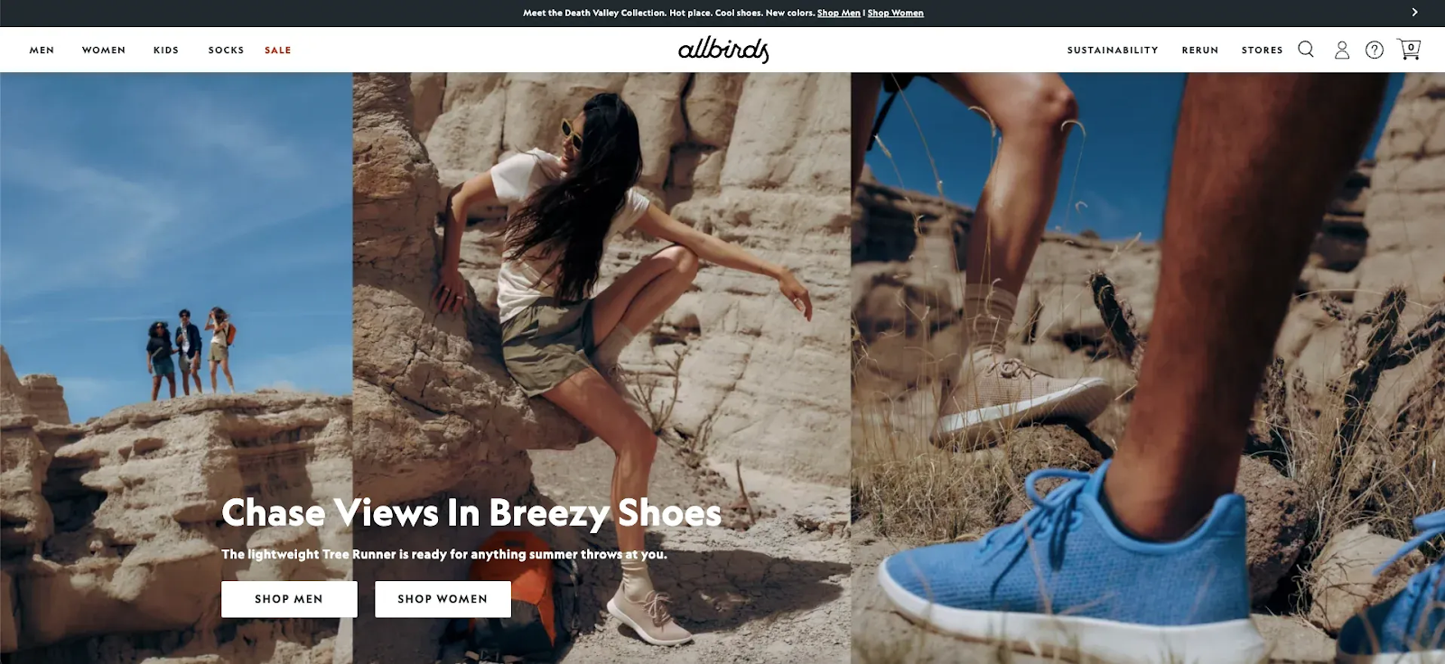 The design of your store determines whether visitors stay, explore, or leave. A cluttered or outdated ecommerce site design signals neglect, while a polished, user-friendly layout conveys professionalism and attention to detail. Just take a look at this example from AllBirds.