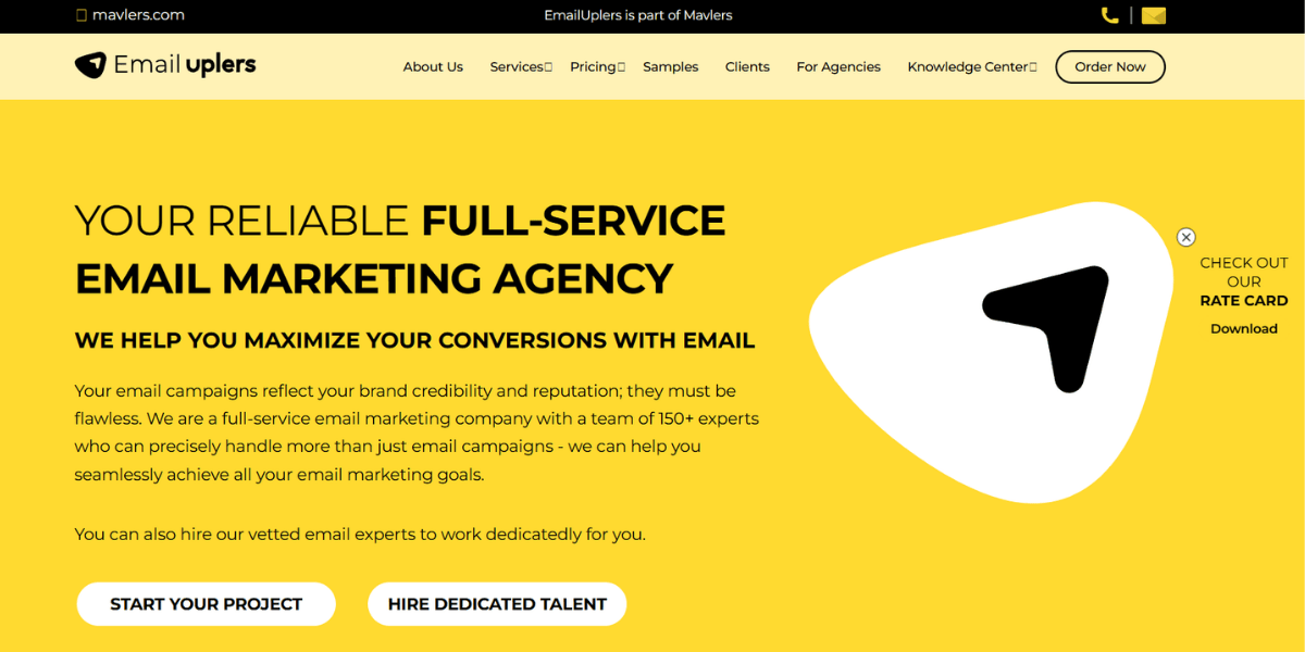 Email Uplers is a specialist email design and development agency that operates on a per-project, pick-what-you-need model. Their email marketing services are the widest of any entry on this list: custom email design, HTML coding, interactive email templates, campaign management, email automation setup, and email audits.