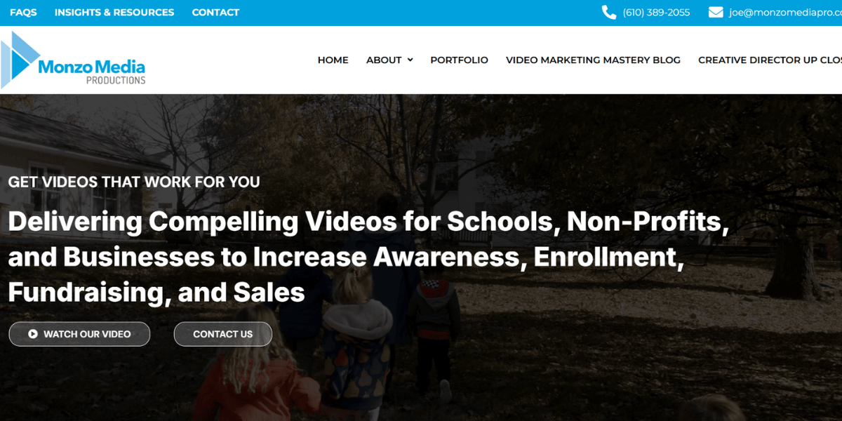 Monzo Media Productions specializes in branded video for private schools, non-profits, and businesses. Their focus is on institutional storytelling - capturing organizational identity and communicating mission in a way that resonates with donors, students, or stakeholders rather than consumers. After production, they offer video marketing services to help clients extract reach from their content across websites, social, and email.
