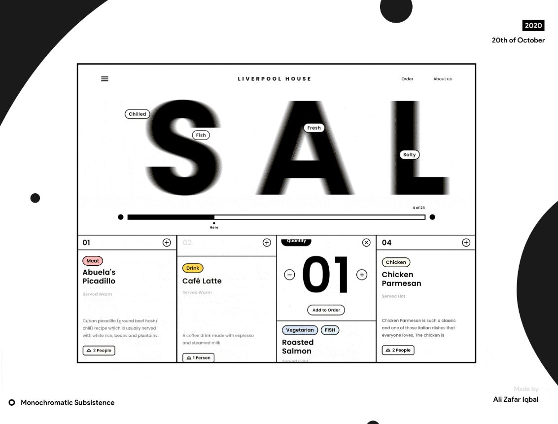 This menu design is exceptional as it takes the diner on a trip around the world with each food representing one city. The photos are paired with subtle illustrations and all the key information is included, like food cost, ingredients and calories.