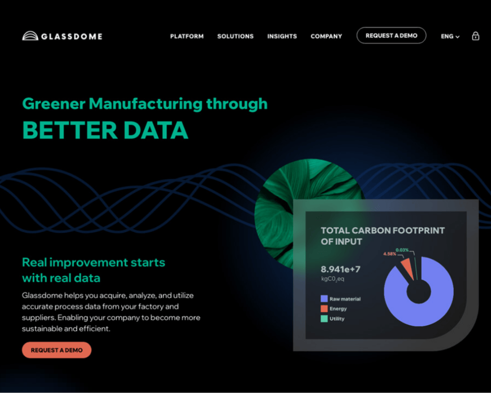 Bop Design redesigned the B2B website for Glassdome, a software platform for manufacturing carbon and production monitoring.