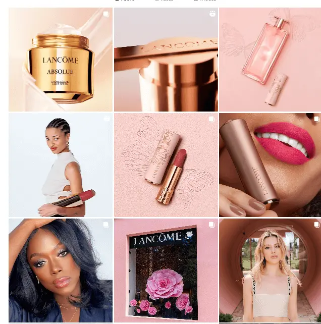 You can also consider changing things up according to the season. For example, while the pink colors from Lancome’s most recent posts are perfect for the summer (and the Barbie-core craze we’ve been experiencing), the cool colors are better suited for elegant posts in the winter months.