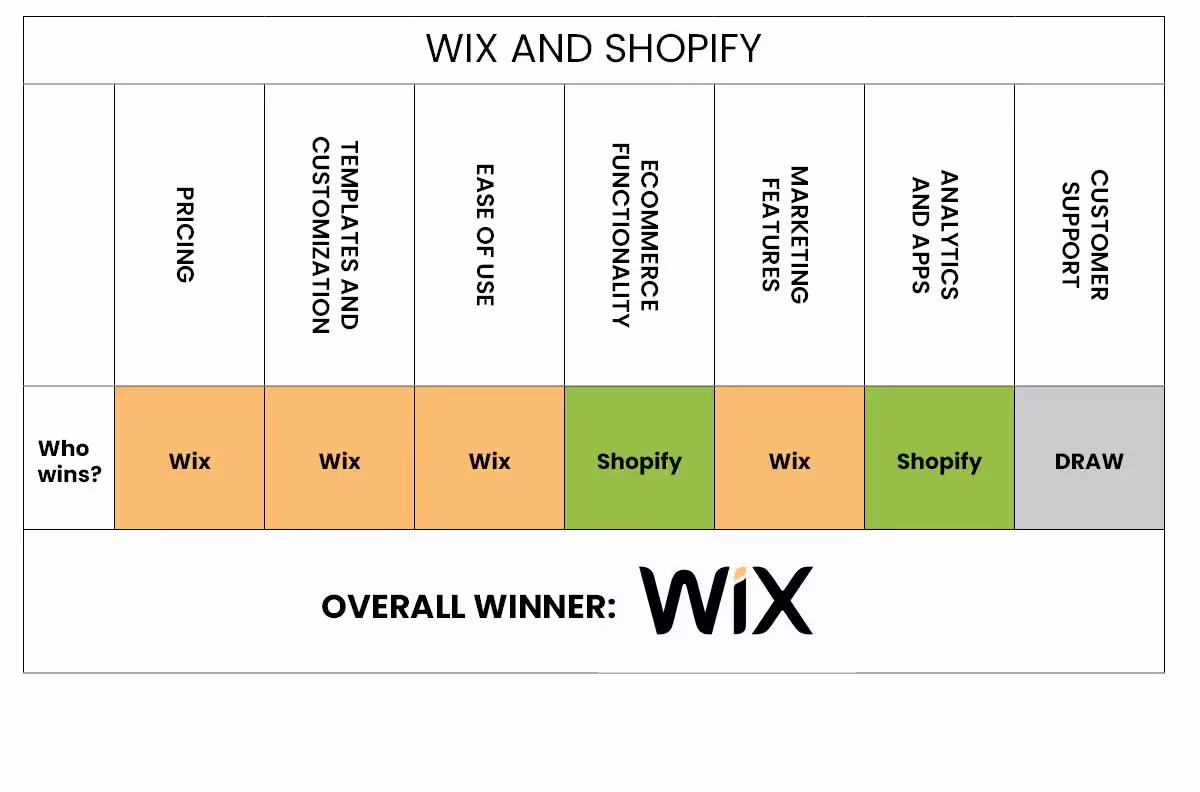 We’ll have to call this round of Shopify vs Wix a draw, since Wix takes the lead in functionality with editorial support, while Shopify has a more agile approach with their customer support.