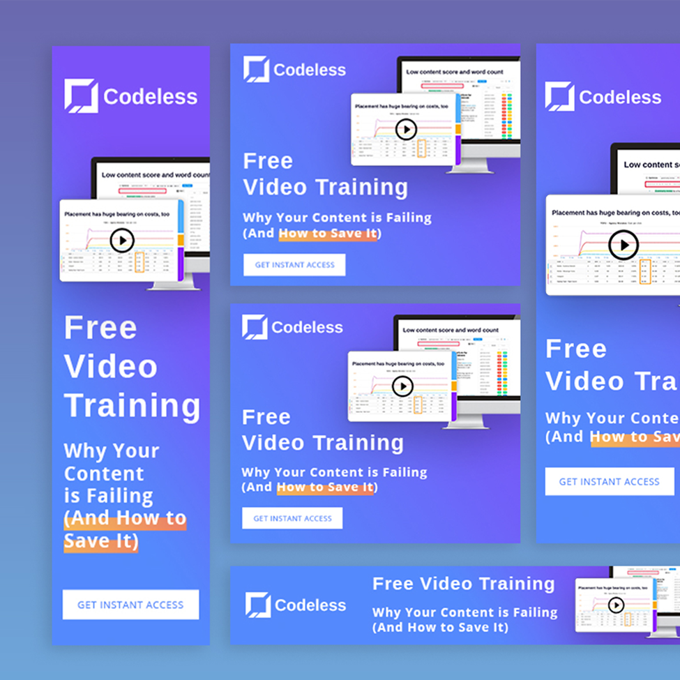 Codeless brought ManyPixels in to cover the full range of design that runs alongside their content work: social media graphics, digital ads, websites, landing pages, presentations, and documents. For larger client projects, they also needed mockups and website elements that developers could pick up and build on directly.